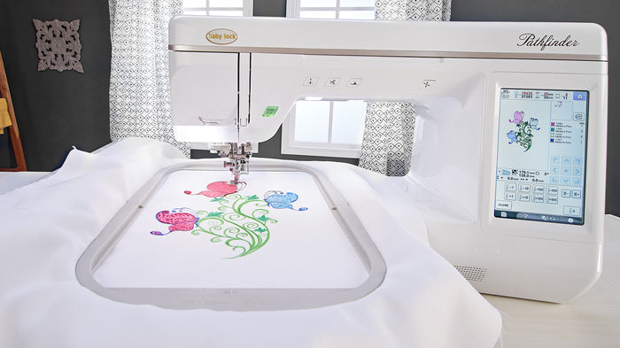 Embark on your embroidery journey with the Baby Lock Pathfinder embroidery machine. Whether you're a seasoned pro or new to the craft, the Pathfinder offers features that make embroidery easier than ever. With an 8" x 12" embroidery field, 263 built-in embroidery designs, and the NeverMiss Automatic Needle Threader, you can easily create stunning designs. The Sensor Pen for Automatic Positioning and Needle Beam make precise embroidery placement a breeze, while the LCD Color Touch Screen ensures easy navigation of the machine's features. Upgrade your embroidery game with the Baby Lock Pathfinder.