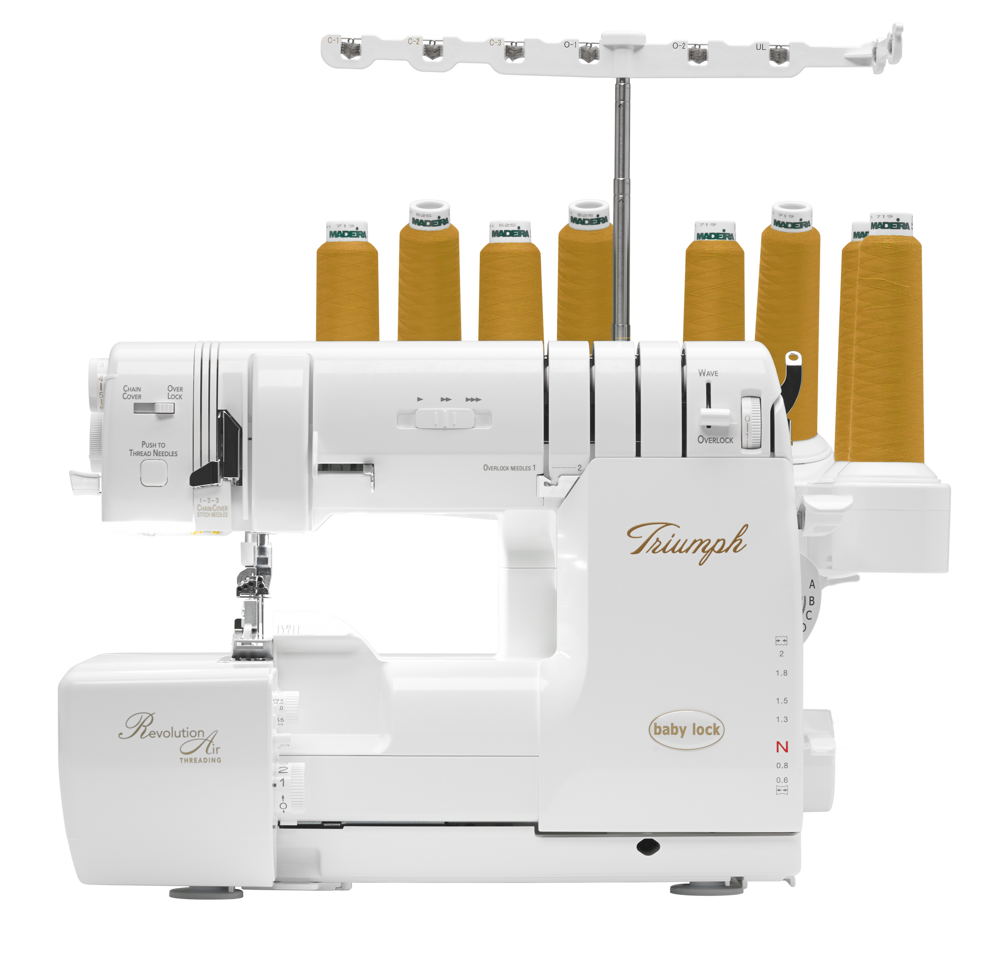 Step up your sewing game with the Baby Lock Triumph serger, the ultimate tool for conquering your serging projects! With RevolutionAir threading, you can thread the loopers and needles in seconds, freeing up more time for creativity. This machine also boasts 87 stitch combinations, including the exclusive Wave Stitch, and a spacious 5 inches of machine space to the right of the needle. Don't let tedious setup hold you back – the Baby Lock Triumph serger takes care of the details so you can focus on bringing your creative vision to life.