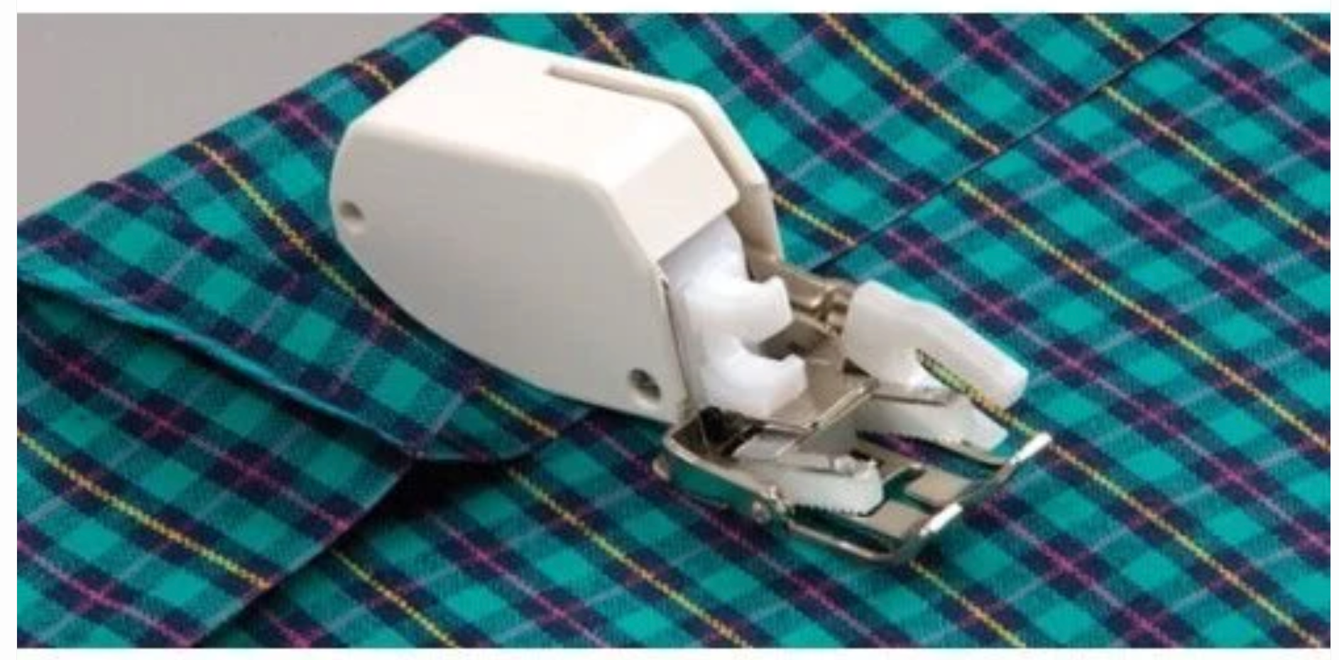 This foot has a set of feed dogs to help feed multiple layers evenly without shifting. The walking foot is wonderful for fabrics that stretch or slip easily, such as velvet and corduroy. You won't believe how helpful this foot is for matching plaids and other difficult patterns perfectly.