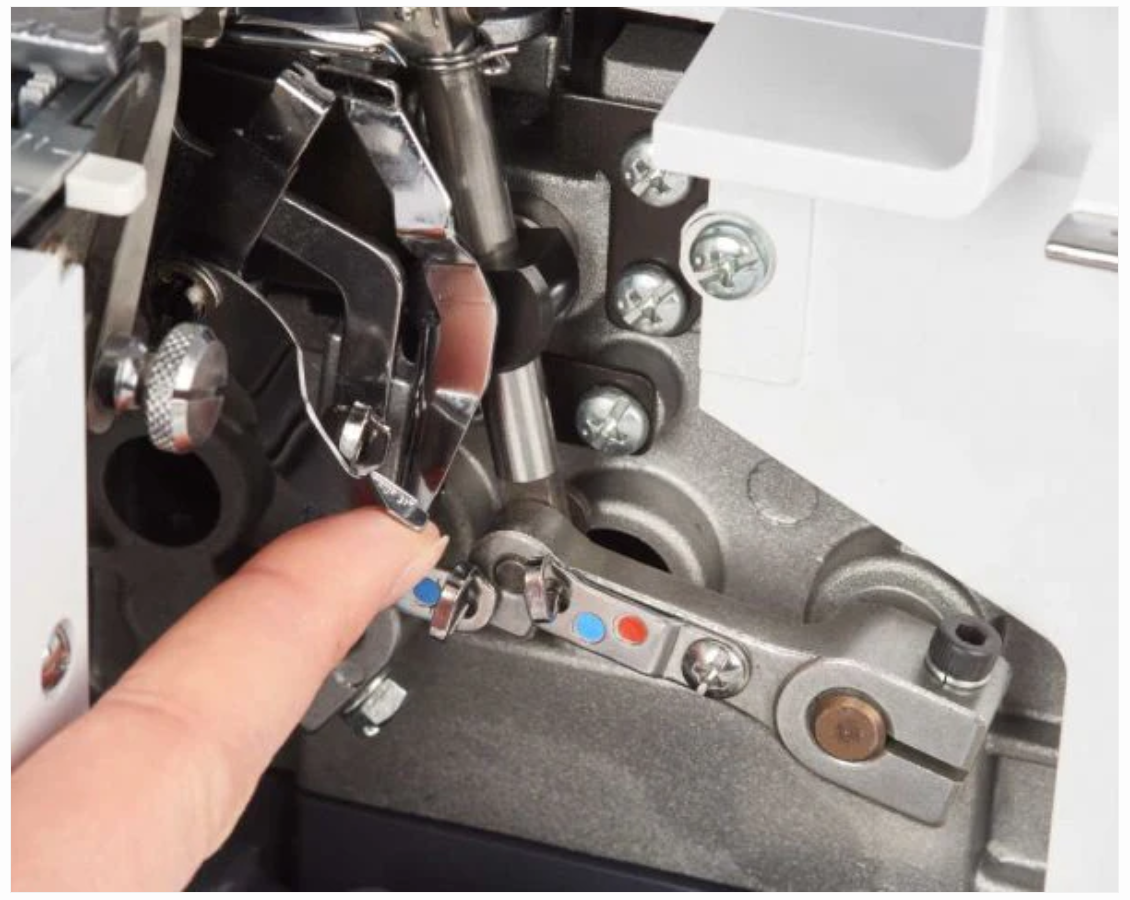 The color-coded, open thread path makes the Bernette Funlock 44 easy to thread by following the colored markings. A separate needle threader and lower looper threading mechanism also make threading easier.