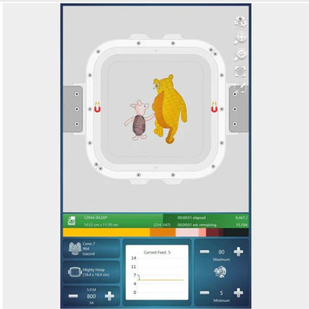 The automatic tension system adjusts thread flow perfectly on every stitch-out, ensuring consistent and professional results across all materials.