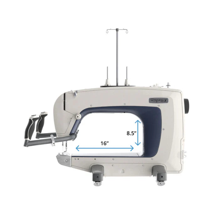 The Grace Q'nique 16X Elite, part of the 16X series from the Grace Company, combines the power of a professional longarm with the comfort level of your home sewing machine.With four different stitching modes, and a 7-inch touch screen display, the Q'nique 16X Elite boasts many powerful features to make your quilting easier than ever. And all of the 16X series machines come with a 16" throat space, meaning you can fit more fabric and quilt larger areas at a time!